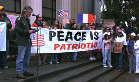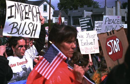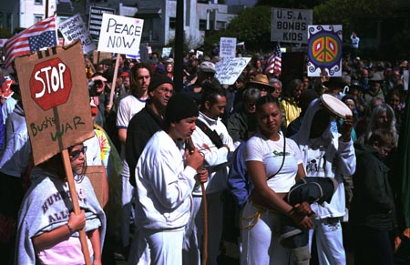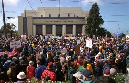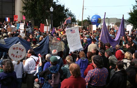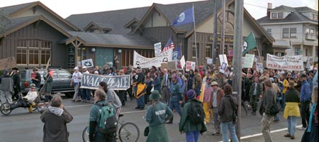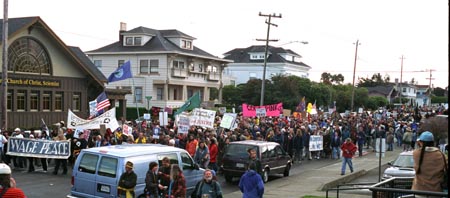 Thousands gathered to march against Bush's war machine and his administration's planned invasion of Iraq. The Eureka Times Standard estimated 2500 marched. Participants' estimates were higher.